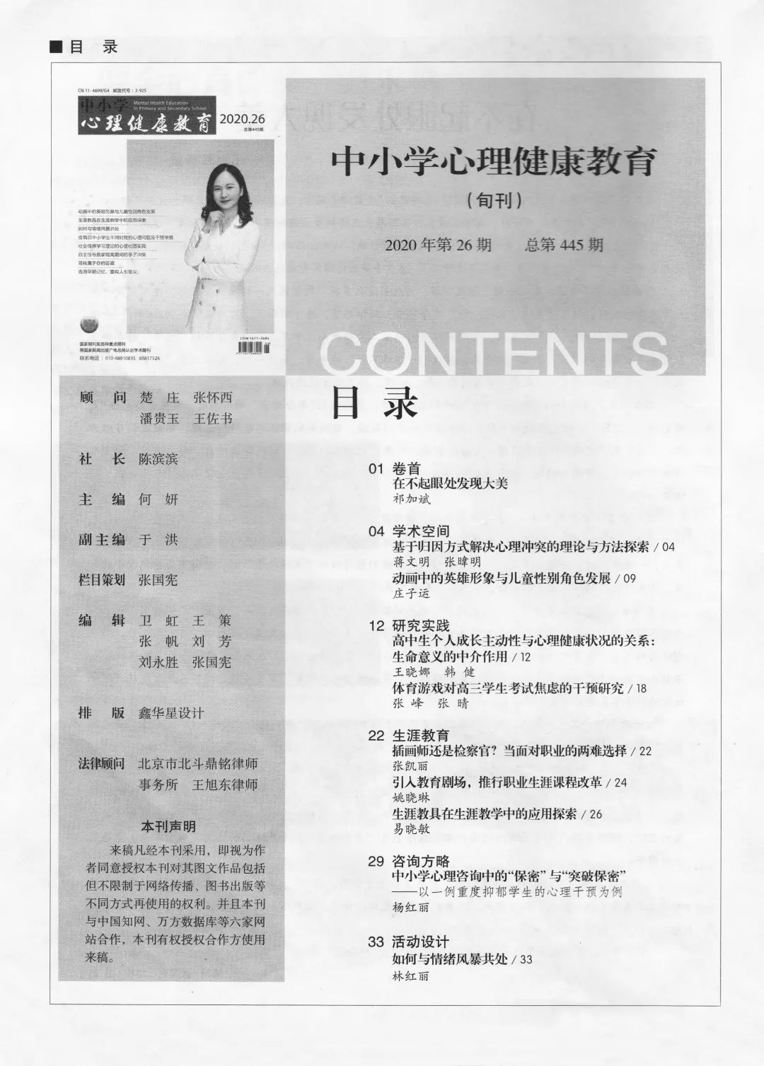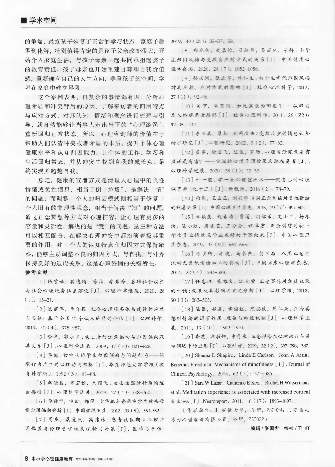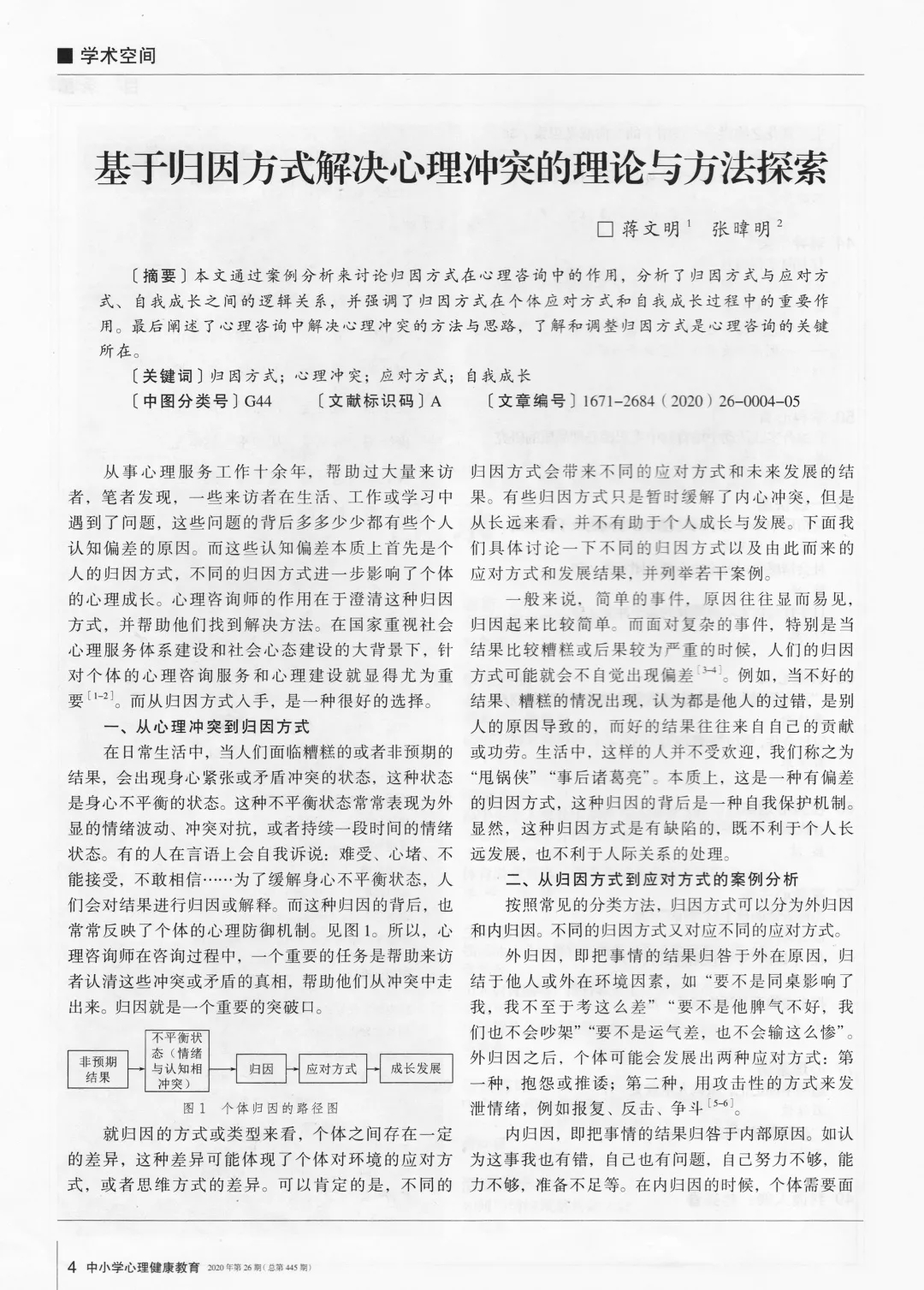近日,心思为总裁张暐明联合学术总监蒋文明博士在中小学心理健康教育上发表了“基于归因方式解决心理冲突的理论与方法探索”学术论文。